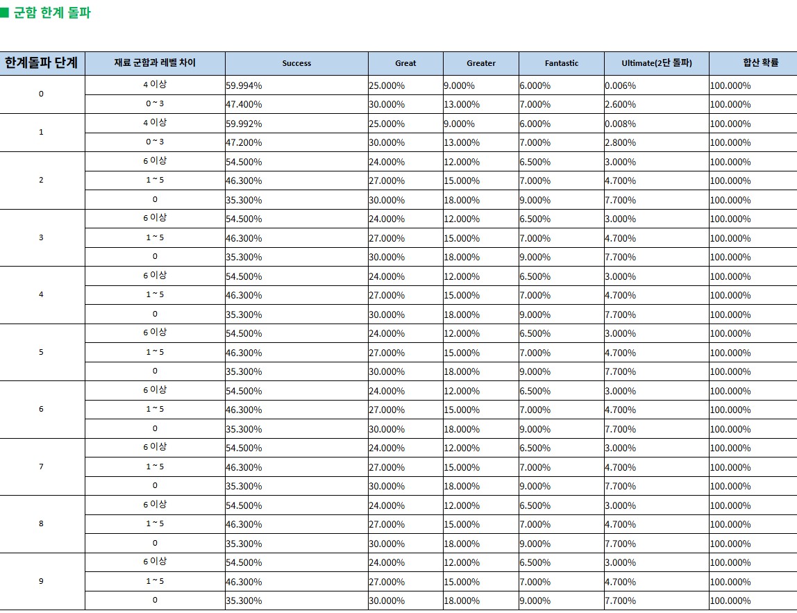 한계돌파 구간이 늘었지만 기본적인 확률 베이스는 변동없을 거니 참고하시고