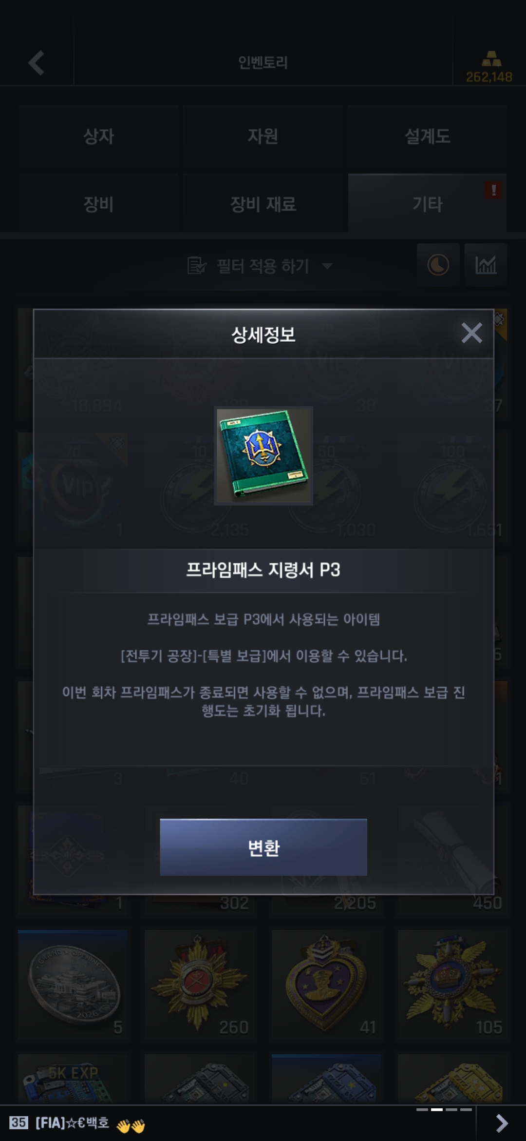 전투이후 휴일 패스 보상 프라임패스 p3번이 맞나요? 지금 p5 쓰고 있잖아요.