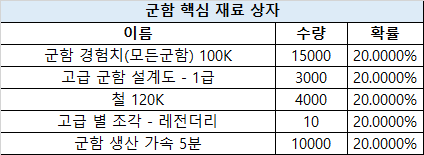 | 0 → 1 | 100.00% | 5.00% | 1 | 강화 수치 변경 없음 | 0 → 1 | 42.00% | 0.93% | 1 | 강화 수치 변경 없음 |
