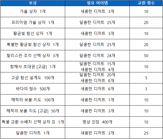 - 보상 교환은 이벤트 기간 동안만 가능합니다.