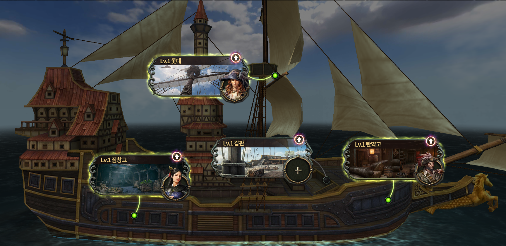 - 항해사의 레벨에 따라 선실의 추가 효과를 획득할 수 있습니다.