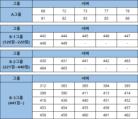※ 서버 이동 이벤트 일정 및 내용은 사정에 따라 변동될 수 있으며, 변동 시 본 공지를 통해 안내해 드리겠습니다.