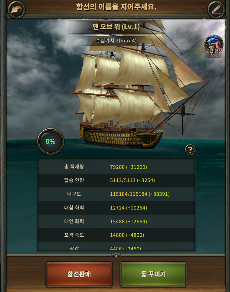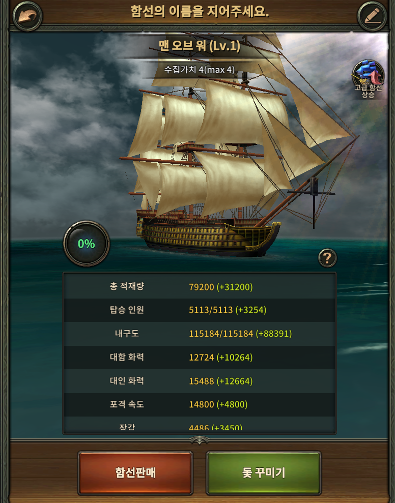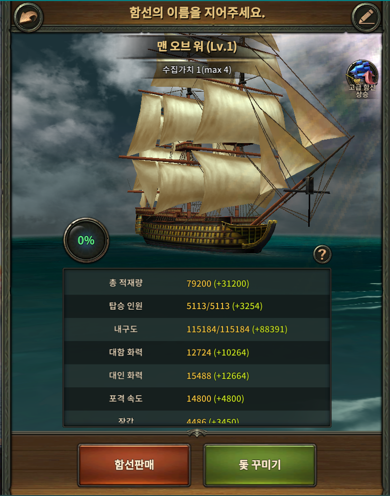 일단 같은 조건하에서 만든 맨오브워는 능력치가 다 똑같네요