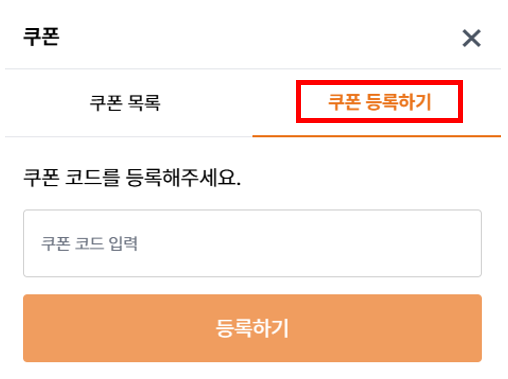 ② [쿠폰 등록하기] 선택 후 코드 입력