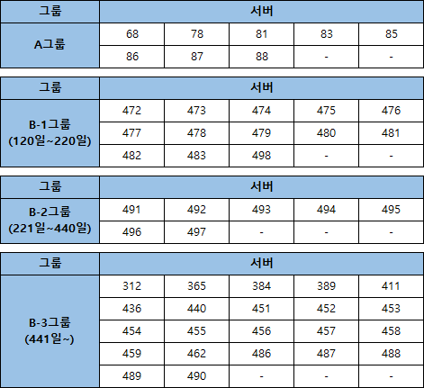 ※ 서버 이동 이벤트 일정 및 내용은 사정에 따라 변동될 수 있으며, 변동 시 본 공지를 통해 안내해 드리겠습니다.